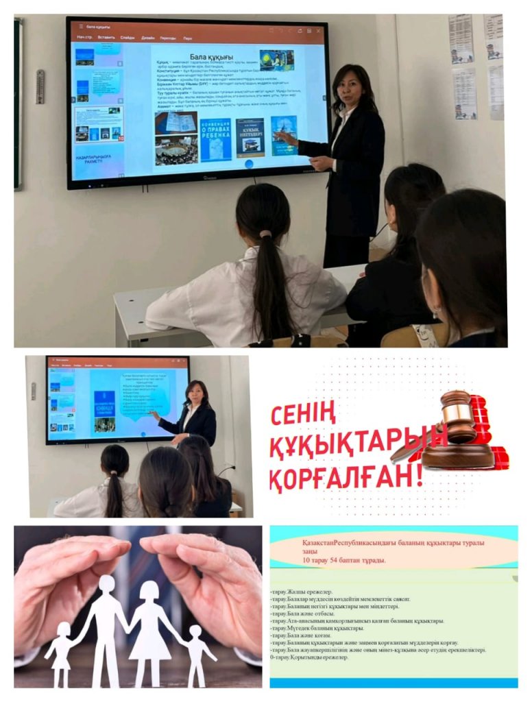 Мақсаты: Оқушыларға өз құқықтары мен міндеттері туралы түсінік беру, Қазақстан Республикасының заңдарына сәйкес бала құқықтарын таныстыру