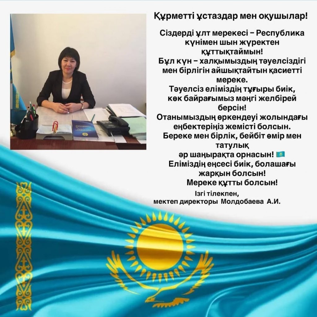 25 қазан — Республика күні мерекесі қарсаңында мектебіміздің директоры