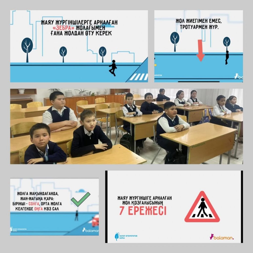Сынып сағаты барысында оқушыларға жолда жүру ережелері, жаяу жүргіншілердің қауіпсіздігі, жол белгілерінің маңызы туралы түсіндірілді. Балалардың жолдағы қауіпсіз мінез-құлқын қалыптастыруға бағытталған әңгіме...