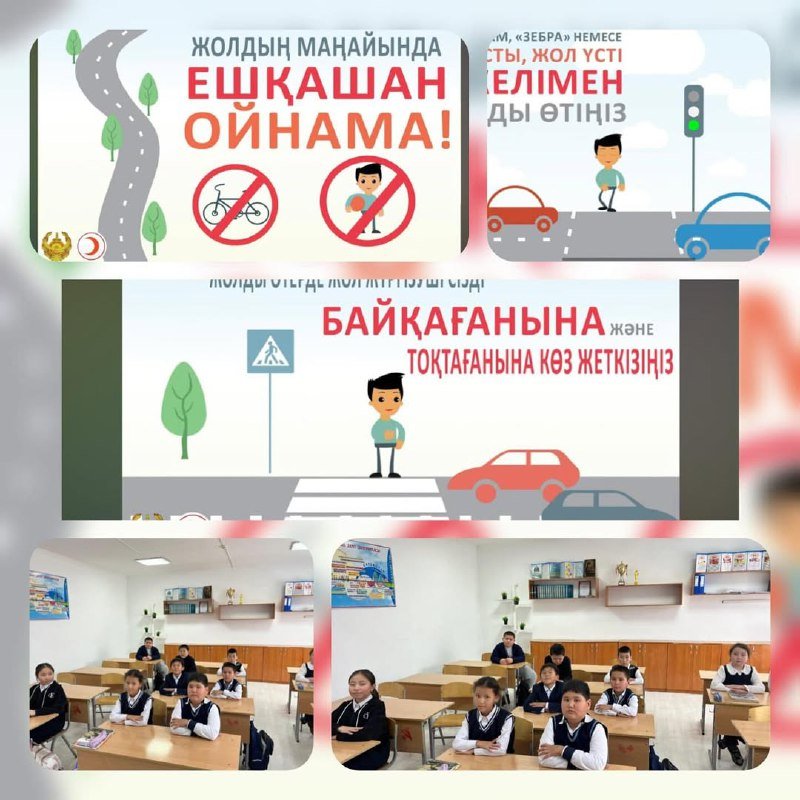5 “А” сыныбында «Жол қозғалысы және қауіпсіздік» тақырыбында сынып сағаты өтті. Сабақтың мақсаты — оқушыларға жолда жүру тәртібін түсіндіру, қауіпсіздік ережелерін сақтаудың маңызын көрсету және күнделікті өмірде дұрыс әрекет етуге үйрету болды.